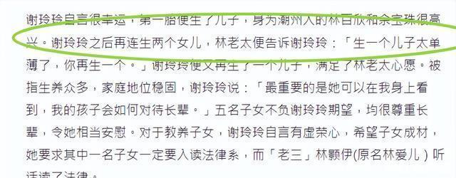 谢玲玲嫁到林家之后,肚子非常正气,第一胎表为林家带来了大儿子,之后连生两个女儿,但余宝珠觉得生一个儿子太单薄,便要求谢玲玲再生一个,为了满足余宝珠的心愿,谢玲玲也是没有拒绝。